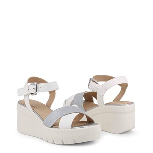 Geox D Torrence B, Sandali con Zeppa Donna, Bianco (White/Silver C0007), 39 EU