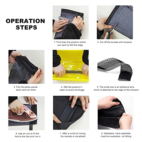 Ampiamente usato - Questi nastri per orli autoadesivi sono adatti per tutti i tipi di abbigliamento come pantaloni, vestiti, gonne, camicie, jeans, pantaloni, ecc. E possono anche essere usati per tende.