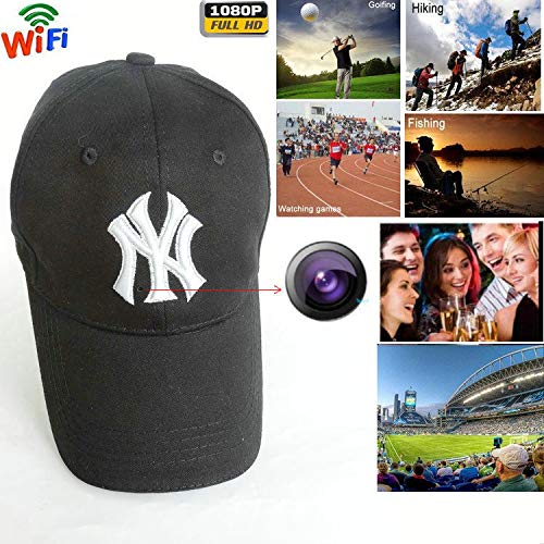 GEQWE Telecamera per Berretto da Baseball WiFi, Videoregistratore Nascosto per Mini Telecamera per Cappelli WiFi 1080P HD, per Interni Ed Esterni