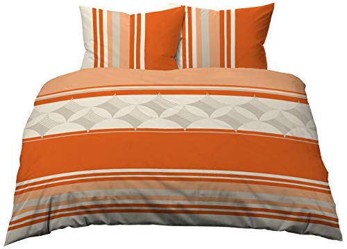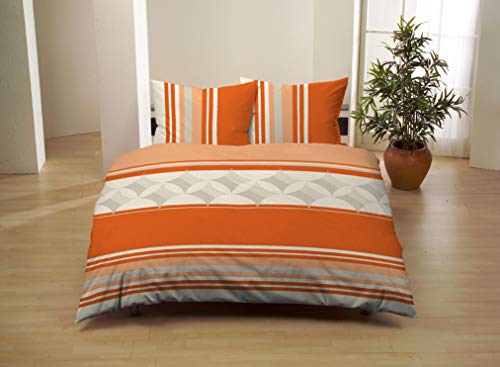 Gerald Wittmann 3 Pezzi Set Copripiumino Renforce, 100% Cotone, Biancheria da Letto Piazza e Mezza, Strisce, Arancione Bianco Grigio, 200x200 cm + 2X 70x90 cm