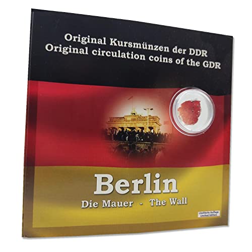 Germania, 6 monete originali 1960-1990 - La caduta del muro di Berlino. Con un pezzo di muro