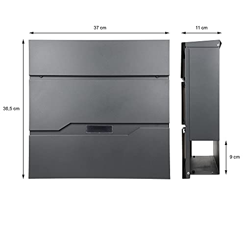 ECD Germany Cassetta Postale da Parete Design Moderno - 37x11x36,5 cm - in Acciaio Inox Verniciato a Polvere - Buca Lettere a Muro con Porta-Giornale 2 Chiavi incl. Materiale di Montaggio Antracite