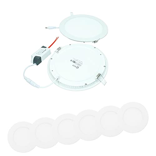 ECD Germany 6 x Faretto da Incasso Pannello LED 18W Sostituisce 90W Alogeno - Ultra Sottile - Rotondo Ø 22 cm Bianco Caldo 3000K - IP44 - Luce Soffitto Corridoio Bagno Cucina Illuminazione da Interno