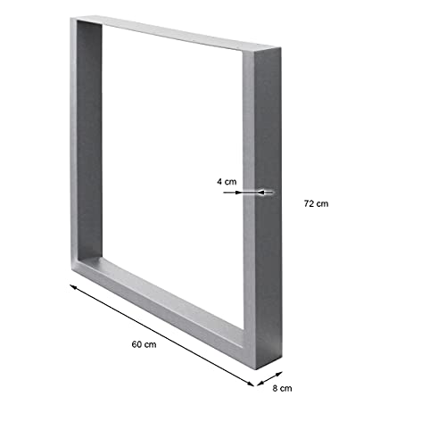 ECD Germany 2x Gambe del Tavolo Quadrate 60 x 72 cm con 4 Protezioni per Pavimento Grigio Verniciato a Polvere in Acciaio Stile Vintage Industriale Supporti Base per Tavoli da Pranzo Scrivanie Mobili