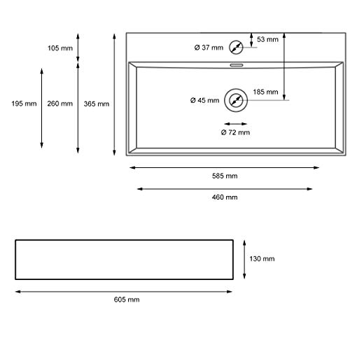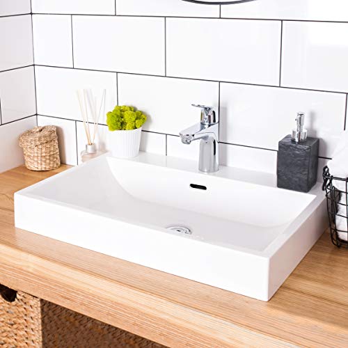 ECD Germany Lavabo da Appoggio in Ceramica Bianco Lucido Rettangolare 605x365x130 mm Design Moderno Lavello Lavandino Lavamano Bacinella per Ospiti Sanitari Rubinetteria per Bagno Casa