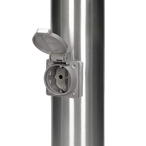 ECD Germany Presa da Giardino 111 cm con 2 Prese - Lampada a Colonna da Esterno Attacco E27 - Acciaio Inossidabile - IP44 - Illuminazione da Pavimento Lampione Paletto Viale Sentiero Terrazza Balcone