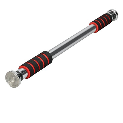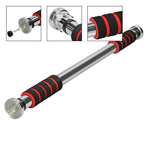 FACILE DA ASSEMBLARE - La barra di trazione è facile da installare - La barra della porta può essere estratta, inserita e bloccata nel telaio della porta. La costruzione è possibile senza viti, tuttavia i perni in gomma inclusi possono essere fissati al telaio della porta con le viti e l'asta può quindi essere fissata in modo più stabile per una maggiore capacità di carico