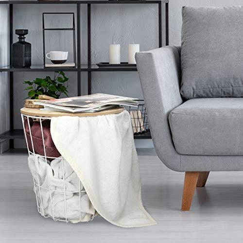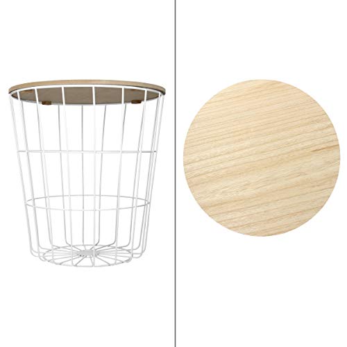 ECD Germany Tavolino d'Appoggio Tavolino Rotondo Ø 38,5 x 42 cm con Piano in Legno MDF Naturale Rimovibile Tavolino con Cestino in Metallo Bianco Tavolino Salotto in Stile Scandinavo Tavolini caffè