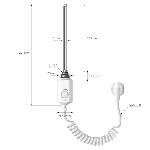 ECD Germany Termostato Regolatore Elettronico di Temperatura per Radiatori da Bagno 1/2" Bianco Acciaio Inox 900W Riscaldatore Elettrico Resistenza Elettrica Scaldasalviette Asta Riscaldante