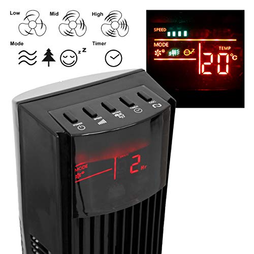 ECD Germany Ventilatore a Colonna Torre da Terra Torretta Silenzioso Oscillante Nero 45W 3 Livelli Velocità Display LED + Telecomando 116 x 31cm Oscillazione 140° Raffrescatore Portatile a Piantana