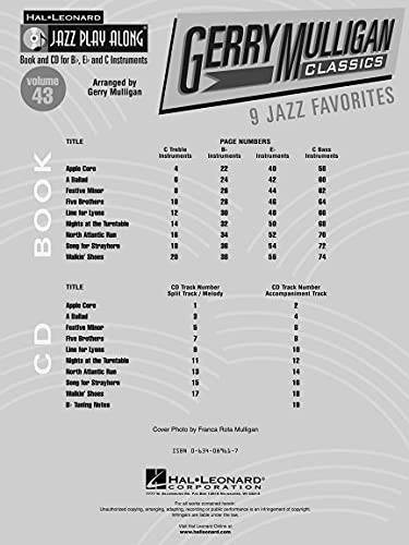 Gerry Mulligan Classics: 9 Jazz Favorites [With CD (Audio)] [Lingua inglese]: Jazz Play-Along Volume 43