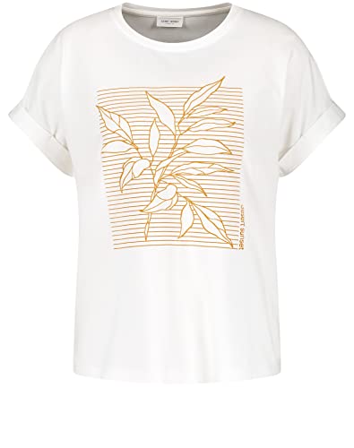 Gerry Weber Maglietta da donna con stampa pregiata, a maniche corte, con spalle sovrapposte, maglietta a maniche corte, stampa frontale, bianco, 46