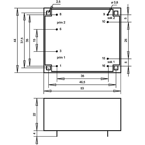 Gerth FL6.12 Trasformatore per PCB 2 x 115 V 2 x 6 V/AC 6 VA 500 mA