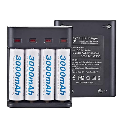 [Funzione di ricarica rapida] Il caricabatterie adotta la modalità avanzata ad alta corrente e la tecnologia di ricarica rapida. L'AA1200MAH può caricare completamente la batteria entro cinque ore.
