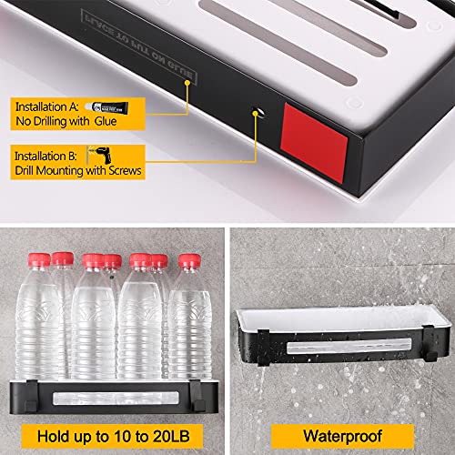 GERUIKE Mensola Per Doccia Mensole Bagno Nessuna Foratura Autoadesivo Montato A Muro, Acciaio inossidabile 304 Antiruggine Cestelli Porta Oggetti 2 Pezzi - Nero