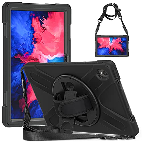 Gerutek Cover for Lenovo Tab P11(TB-J606F/J606X)/Tab P11 Plus (TB-J607), Antiurto Robusta Custodia lenovo Tab P11 con [Cinghia da polso girevole a 360°] [tracolla ][supporto] per Lenovo Tab P11,Nero