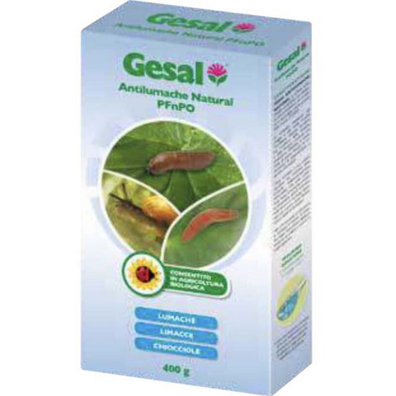 1,0 PZ Di GESAL LUMACHICIDA NATURALE 500 G Esca lumachicida in granuli pronta alluso. A base di una sostanza attiva naturale che, una volta esaurita, si trasforma in nutrimento per le piante. Protegge piante ornamentali, frutta e ortaggi da chiocciole e limacce. Resistente alla pioggia, alle irrigazioni e alla muffa. Attento alla sicurezza di animali selvatici e domestici. Confezione 500 g.