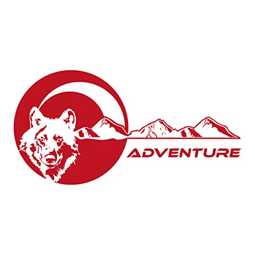 Gesar Adesivo con Lupo, Montagne e 2 Pezzi Adesivo Scritta Adventure - Adesivo per Auto e Camper - Adatti per valigie moto - Adesivo Testa di Lupo (Rosso)