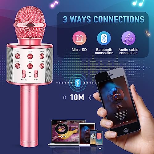 Regali - Il microfono karaoke portatile leggero è di dimensioni ridotte e facile da tenere, il tocco confortevole è adatto sia per adulti che per bambini di 5 anni per esercitarsi e condividere le canzoni preferite sull'app musicale (YouTube, Pandora, Spotify ecc.), è un fantastico regalo di compleanno o festival per i tuoi bambini, amici o familiari.