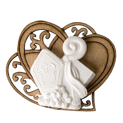 12X Gesso Gessetto SANTA CRESIMA su cuore legno 5.5 cm BOMBONIERA