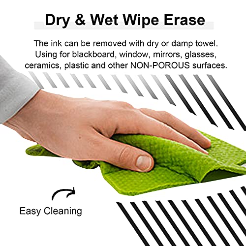 ✎ CANCELLABILE FACILE - Cancella con cancellazione a secco o in umido. Rimuovere l'inchiostro a gesso nero in pochi secondi da tutte le superfici NON POROSE con un panno asciutto o umido. Non è necessario alcun ulteriore prodotto per la pulizia.