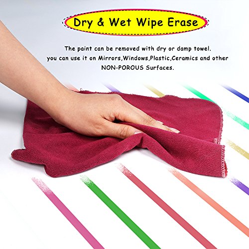 Facile da cancellare - Dry/Wet Erase Chalk Pen salviette off in pochi secondi si raccomanda l' utilizzo su tutte le superfici. L' inchiostro può essere facilmente cancellabile con un panno asciutto o bagnato, gomma o persino il vostro dito da qualsiasi superficie NON POROSA.