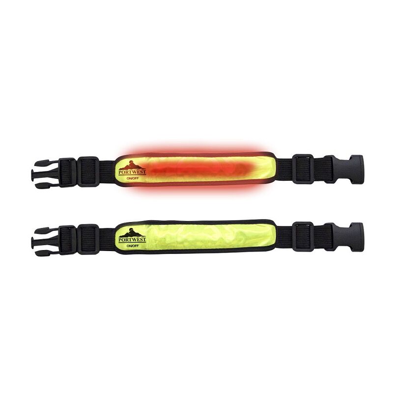 Dati tecnici: Norme: CE RoHS EN 13356. Bracciale leggero e regolabile con luce LED che emette luce continua o pulsante. Aumenta significativamente la visibilità di un dipendente, pedone o ciclista di notte. Luminoso, leggero e compatto - L'illuminazione dei tasti emette una luce rossa e aumenta la visibilità - Durata della batteria 80 ore - Batteria CR2032 da 3 V - Confezione di vendita per una facile esposizione**