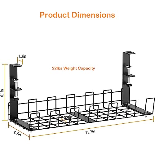 【Costruzione robusta】 L'acciaio dolce è decisamente più forte e più durevole della plastica. Questo organizer in filo metallico sotto il tavolo è ben rivestito per un'eccellente resistenza alla polvere e all'umidità e offre una buona stabilità di lunga durata e proprietà portanti. La struttura a rete ti consente di inserire o estrarre i cavi ogni volta che ne hai bisogno, il che è conveniente e può farti risparmiare tempo.