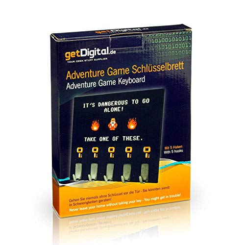 GetDigital, Dangerous To Go Alone, Appendichiavi - Geeky Appendichiavi da Parete con 5 Ganci in Metallo - 21 x 16 cm