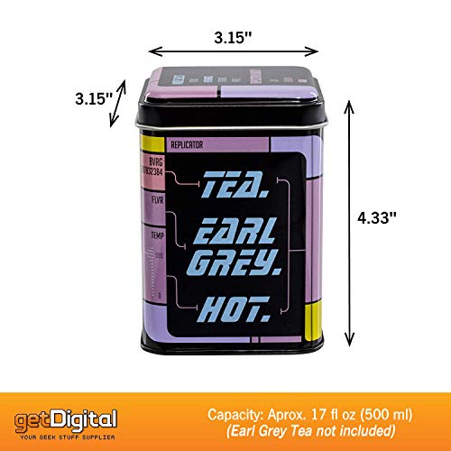 GetDigital Scatola da tè Tea. Earl Grey. Hot. - Barattolo di latta con coperchio per tè in foglie - Ispirato all'interfaccia del replicatore della Enterprise - Capacità 500 ml