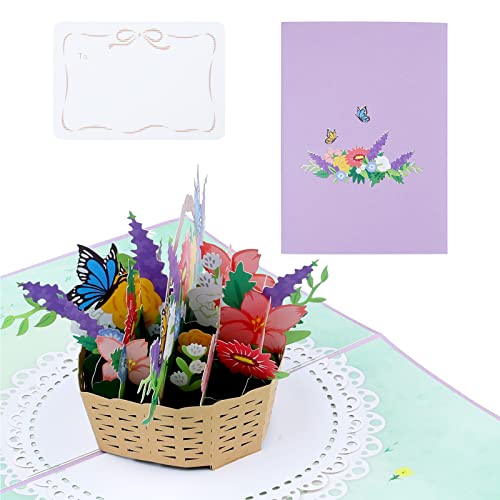 Getervb Carta Pop Up Biglietto di Auguri 3D Fiori Fatto a Mano Biglietto di Ringraziamento con Busta per Festa Della Mamma Compleanno San Valentino Natale
