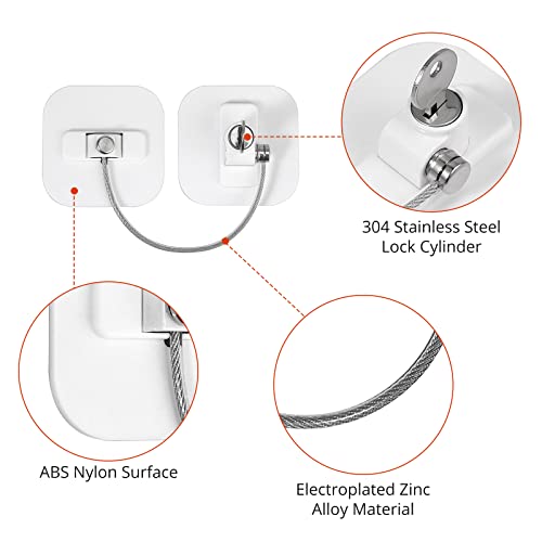 【Cosa della Consegna】2 Pezzi di Serratura del Frigorifero Bianco e 4 Chiavi. La Serratura è Realizzata con Superficie in Lega Elettrozincata, Cilindro di Chiusura in Acciaio Inox 304 e Cavo d'Acciaio, Che Non Si Stacca dalla Vernice ed è Durevole.