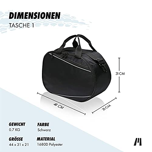 queste este state appositamente progettato per la Yamaha FJR 1300, FZ, FZR, FZ Fazer, XJ, XJR, TDM valigie laterale - Dimensioni: lunghezza: 44 cm;
