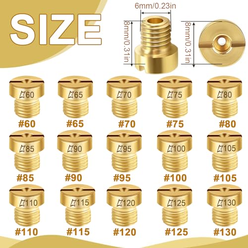 COSA PUOI OTTENERE: Riceverai 15 getti carburatore, Disponibile in 15 misure: 60, 65, 70, 75, 80, 85, 90, 95, 100, 105, 110, 115, 120, 125, 130. Facile da usare e in grado di soddisfare tutte le esigenze.Occupa meno spazio, è più portatile e porta più divertimento nella vostra vita.