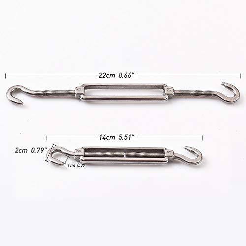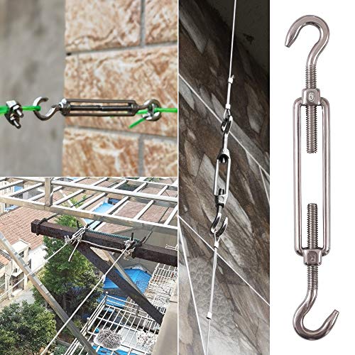 Getue Cozihom, M6 Hook & Hook/C to C Turnbuckle 304 Stainless Steel, Hardware Kit for Wire Rope Tension Heavy Duty, for Sun Shade, Tent Installation, Anti-Rust, 6 Packs