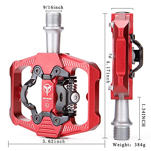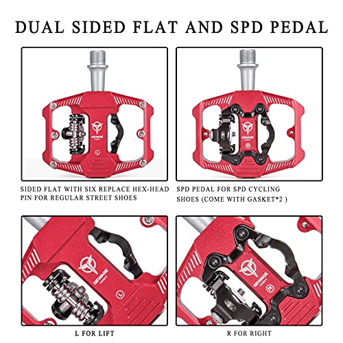 GEWAGE Pedali per bicicletta SPD, pedali per mountain bike, doppio lato SPD, piattaforma antiscivolo, con 3 cuscinetti, pedali in alluminio leggero, 9/16", con inserti per MTB, bici da strada (Rosso)