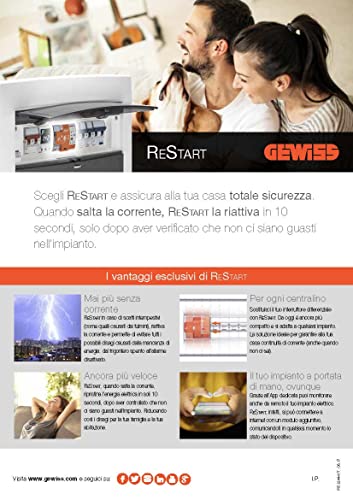 Gewiss Restart Rd 2 Poli, Accoppiato Con Differenziale Puro Idp, 13.2 x 11 x 10 Cm, Bianco
