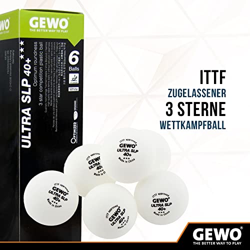 GEWO, Ball Ultra SLP, palla da ping pong senza cuciture, massima rotondità, 40, colore: bianco, 6 pezzi, Unisex - Adulto, Palla da ping pong, 81351200, bianco, 40