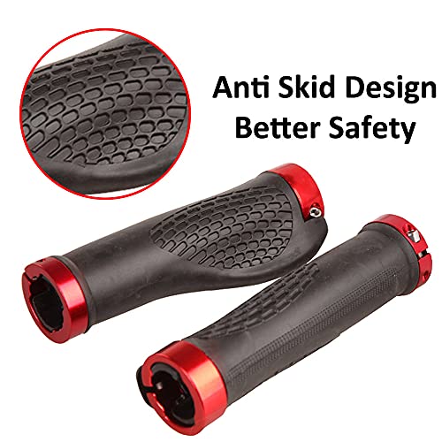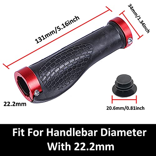 Gexmile Maniglie Manubrio Bici Rosso Ergonomico Antiscivolo Gomma Biciclette Impugnature Manopole Doppio Serratura Alluminio Tappi Monopattino 22mm