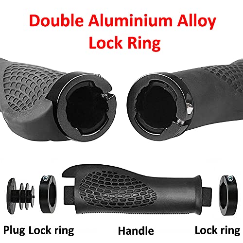 【Doppio sistema Lock On】 Design a doppio morsetto, facile da rimanere in posizione senza torsioni. L'anello in lega di alluminio mantiene le impugnature strette e sicure. I resistenti cappucci terminali sono integrati nel morsetto e impediscono la caduta.