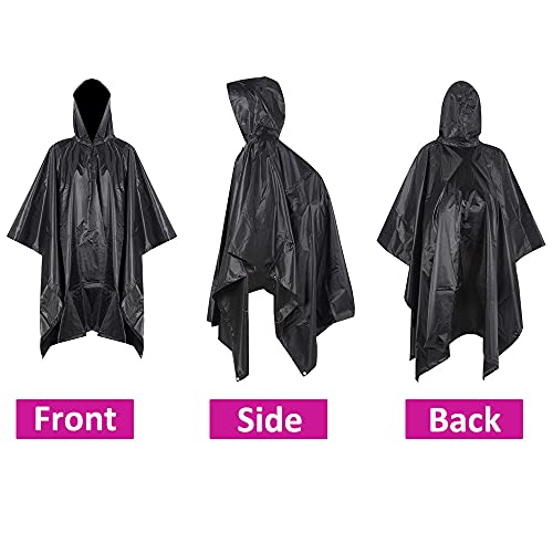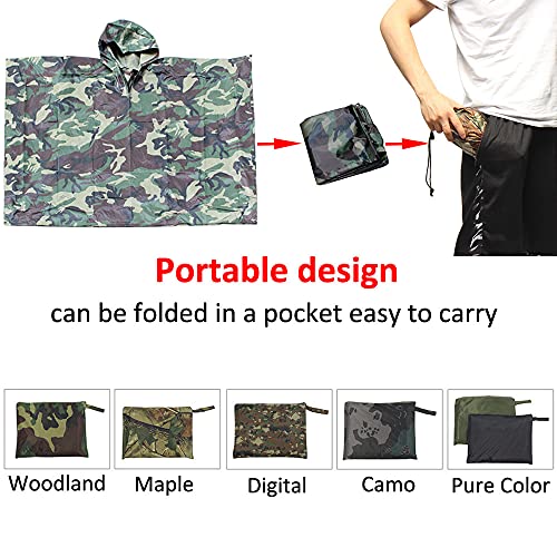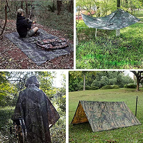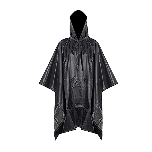 Gexmile Poncho Impermeabile con Cappuccio Mimetico Giacca da Pioggia Campeggio Escursionismo Copertura Antipioggia Telo da Tenda Nero
