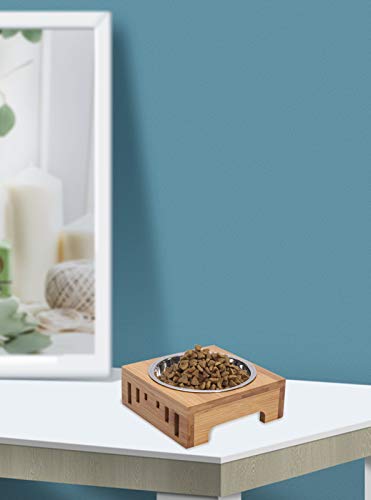 Geyecete - Acciaio inossidabile Ciotola per per gatti e cani, Stazione di Alimentazione per Gatti con supporto in legno, ciotole per cucciolo e gattini, Grande per Acqua e Cibo -1 ciotola