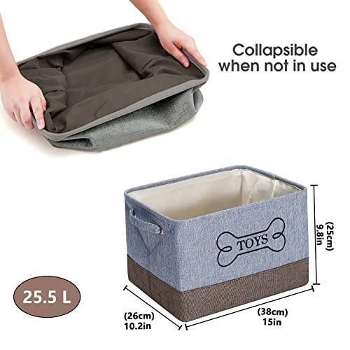 Geyecete - Cestino portaoggetti per Giocattoli per Cani in Tela, con Maniglia Esterna,Contenitore per Vestiti per Cane, Scatola Giocattoli per Animale Domestico- 38x26x25cm-Blu/Cachi