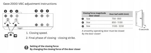 GEZE TS 2000 V BC - Chiudiporta a due ante fino a 1250 mm di larghezza con aste e piastra di montaggio, set 3 in 1
