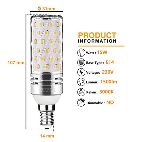 GEZEE LED Argento Mais lampadine E14 15W Small Edison Screw Equivalente a 120W 1500Lm Non Dimmerabile 3000K Bianca Calda Lampadine a candela(4 pezzi)