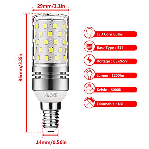 GEZEE LED Argento Mais lampadine E14 12W Small Edison Screw Equivalente a 100W 1200Lm Non Dimmerabile 6000K Bianco Freddo Lampadine a candela(4 pezzi)