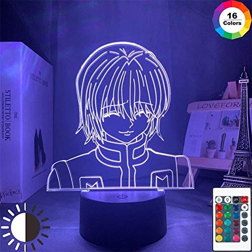 GEZHF 3D Anime Led Night Lights Hunter X Hunter Anime Lampade Kurapika Figura 3D Illusione Luce per Kid Camera Decorazione 16 Colori con Telecomando