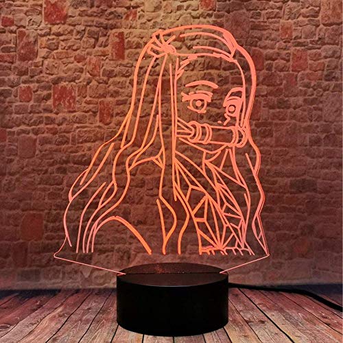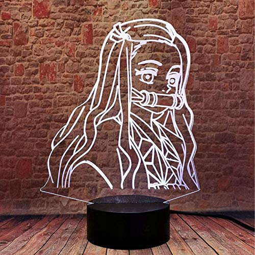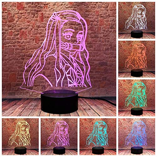 GEZHF Demone Slayer 3D Illusione Anime Luce Notturna LED Kamado Nezuko Lampada Colorata Telecomando Illuminazione Ragazzi Casa Decor