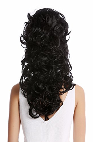 WIG ME UP - GF-W2418-1B Parrucca Donna Barocco Anni 60 Retro Enorme Beehive Acconciatura raccolta Crocchia Riccia Lunga Frangetta Nero
