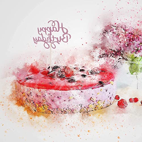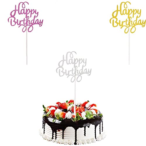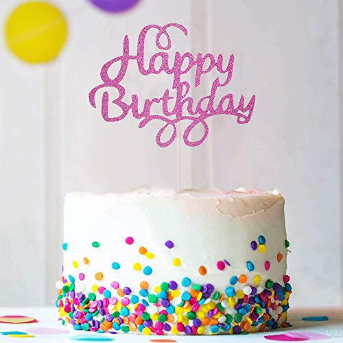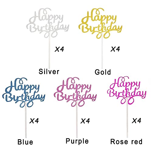 Gfdg Topper per Torta di Compleanno, 20 Pezzi Torta Colorato Topper, Glitter Decorazione per Torta,Compleanno Festa Topper Decorativi, per Torte di Compleanno (Argento,Oro,Viola,Blu, Rosa Rossa)